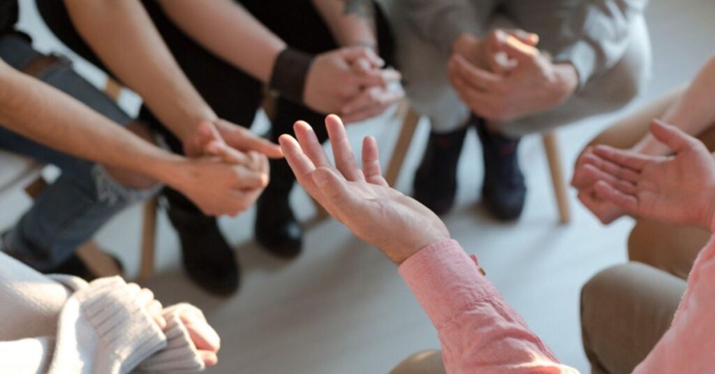 Group therapy brings people together with shared experiences. Guided discussions build trust and reduce isolation. Listening to others helps people feel understood.